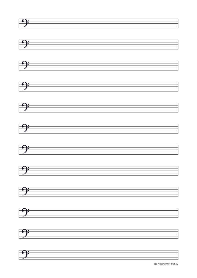 Notenpapier mit Bassschlüssel zum Ausdrucken